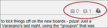 Click on the appropriate button to rate an individual post. Click on the "crowd icon" next to the plus/minus buttons to see who rated each post.